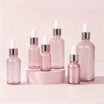 ハイエンドの輝くピンクガラスのドロッパーボトルセットスタイリッシュなシルバーキャップ付き