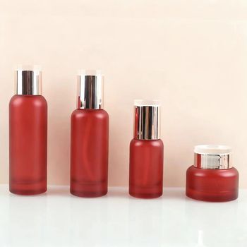 Garrafas cosméticas geadas vermelhas com tampas metálicas para o armazenamento luxuoso da beleza