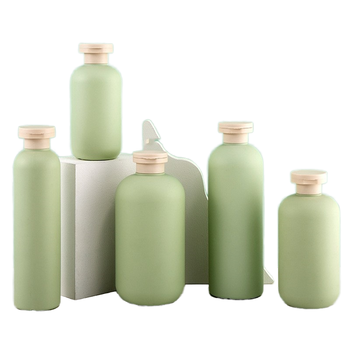 ขวดเปล่าพลาสติก PET สีเขียวขุ่น250มล./300มล./400มล./16ออนซ์ฝาเกลียวเคลือบผิวพลิกบรรจุภัณฑ์สำหรับครีมนวดผม