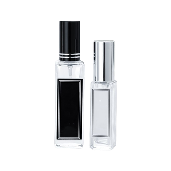 ขวดน้ำหอมแก้วเครื่องสำอางทรงสี่เหลี่ยมผืนผ้า3มล. ฝาอลูมิเนียมสีดำทองเงิน
